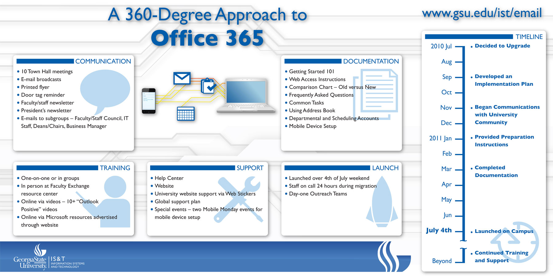 Moving your university to a brand-new e-mail system is always challenging. If your school has been using the same system for over a decade, the change can seem traumatic to some users. We will offer a practical look at how we guided our university through this massive change.