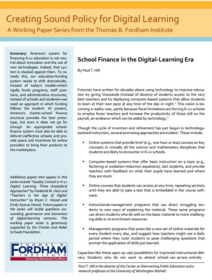 America’s system for financing K-12 education is not neutral about innovation and the use of new technologies. Indeed, that system is stacked against them. To remedy this, our education-fundi…
