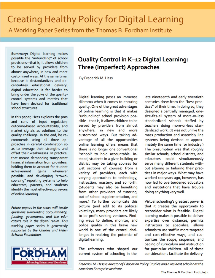 Quality Control in K–12 Digital Learning: Three (Imperfect) Approaches