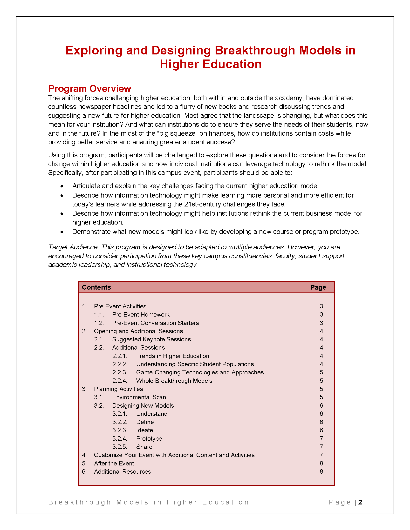 Exploring and Designing Breakthrough Models in Higher Education